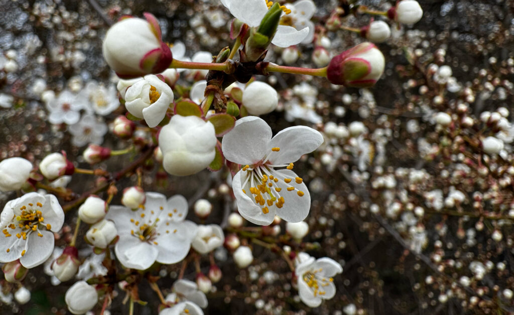 Pociągnąłem skrzywione przęsło furtki. O, a z tej strony żywopłot ogranicza przestrzeń, by mogła pełnić funkcję głównej bramy, a nie wejścia bocznego. Tuż naprzeciw wejścia do Ogrodu Ciszy i Medytacji wpadam na drzewa płonące iskrami białych kwiatów. Mój Boże. Cóż za siła życia. Jaka wiara w jego odrodzenie.